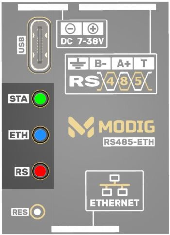Konwerter MODIG RS485-ETHERNET DIN to wielofunkcyjny i łatwy w obsłudze konwerter magistrali RS485, na interfejs sieciowy Ethernet. Konwerter jest przystosowany do montażu na szynie elektroinstalacyjnej DIN 35. Dzięki kompaktowej konstrukcji urządzenie ma szerokość tylko 35 mm i może być zamontowane nawet w niewielkiej szafce rozdzielczej. Dodatkowy interfejs USB ułatwia obsługę i konfigurację.